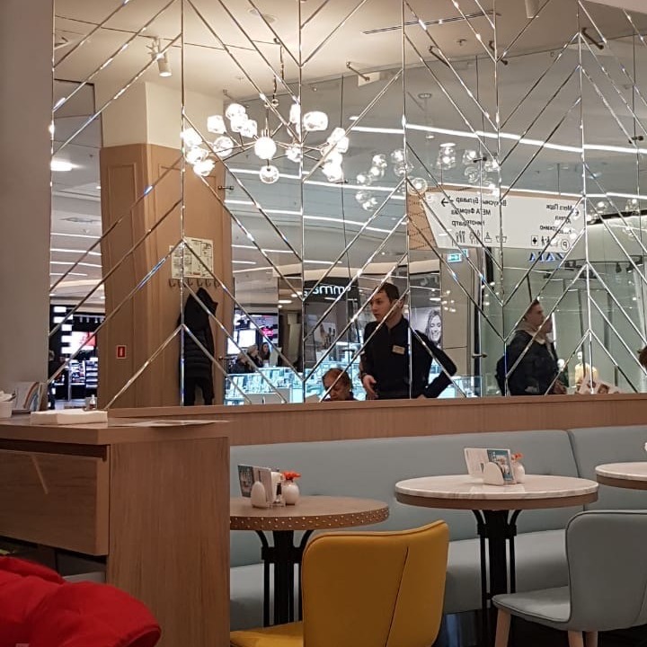 Многие привыкли, что зеркало в кафе украшает стену позади бармена, но оформление обеденной зоны также имеет свои преимущества.